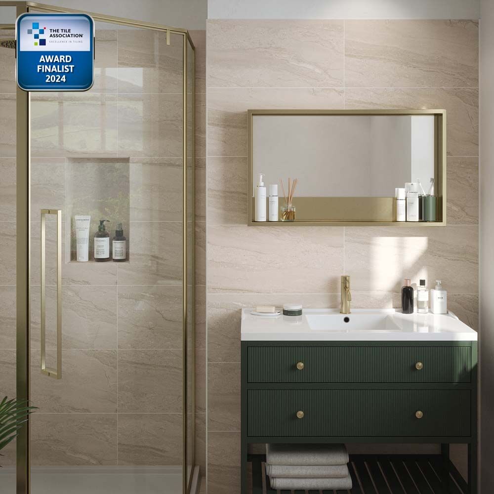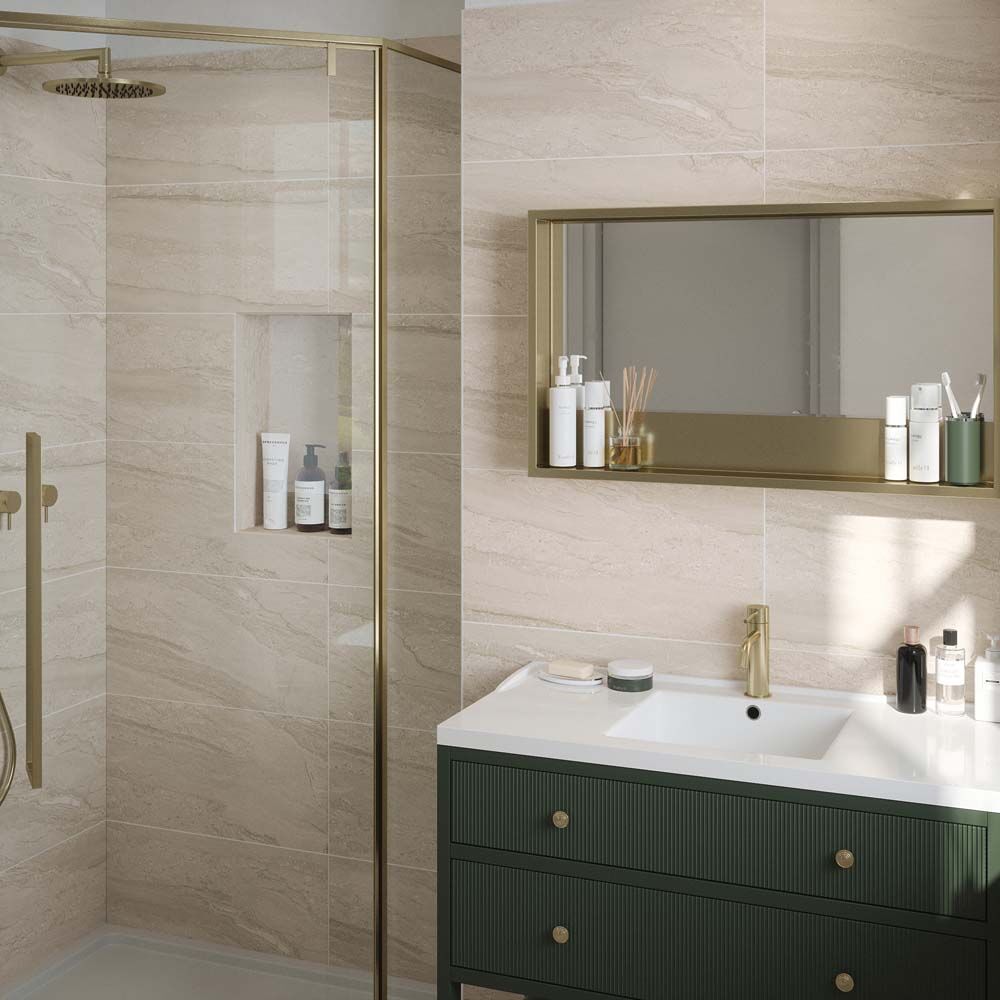 Large, Ceramic wall tile in matt Beige with n0n-rectified edges. For use in kitchens and bathrooms, great for wet-areas.